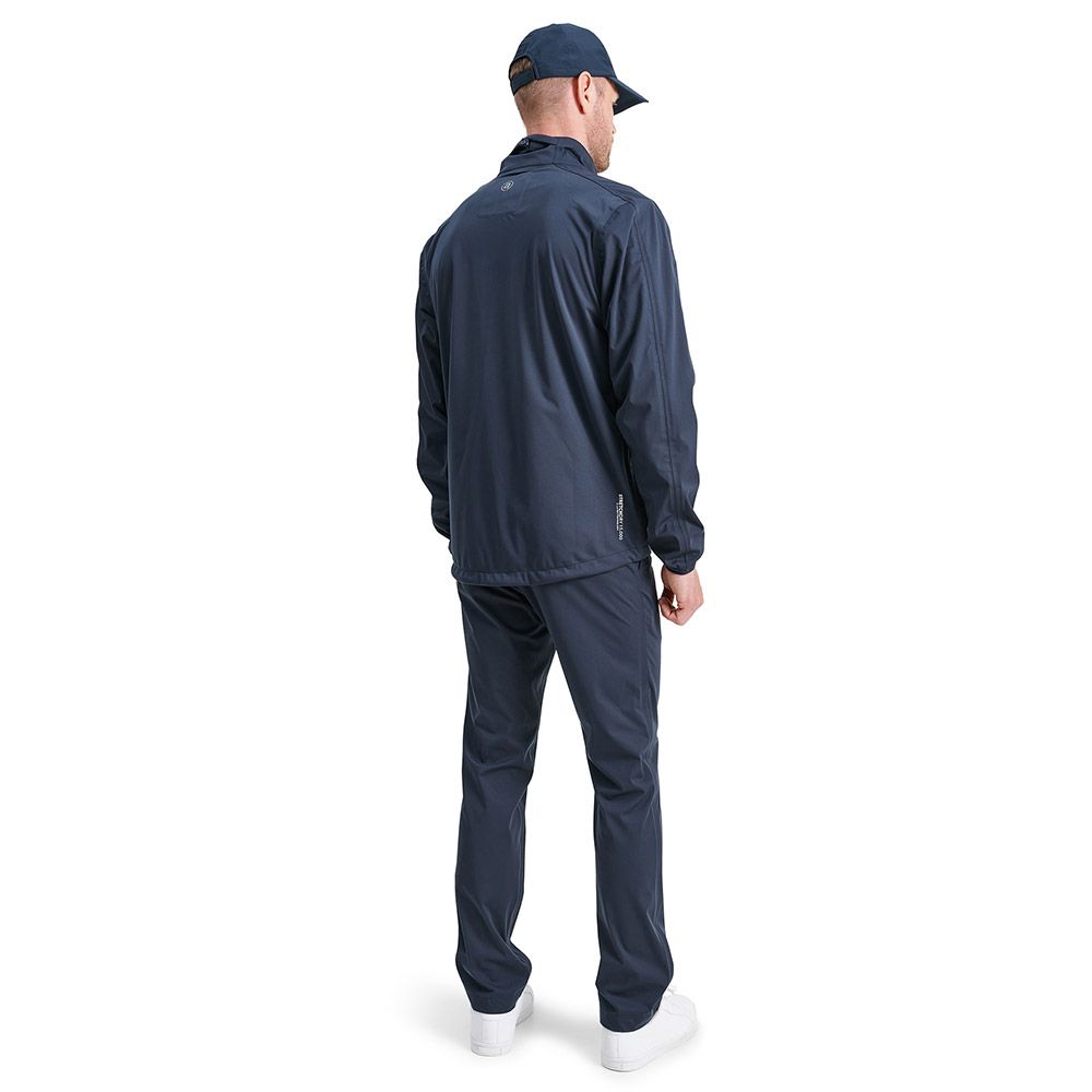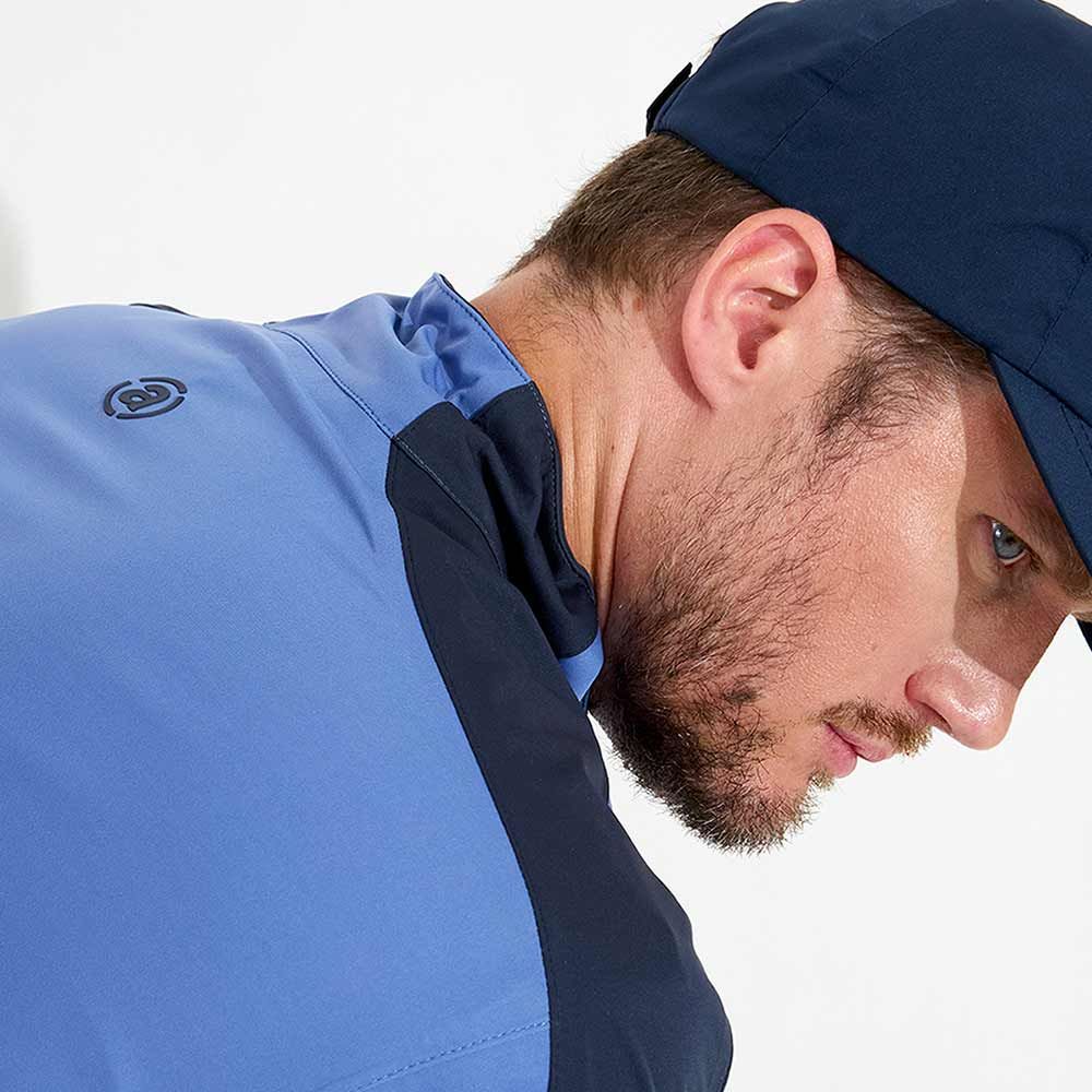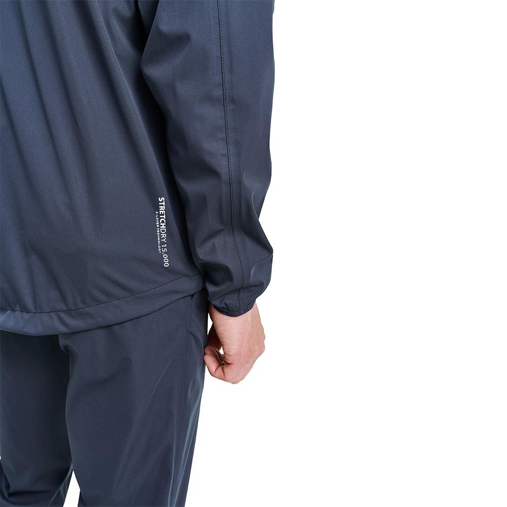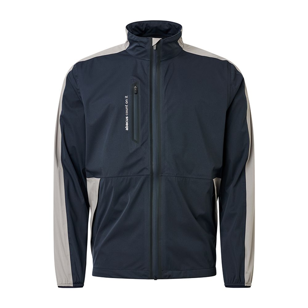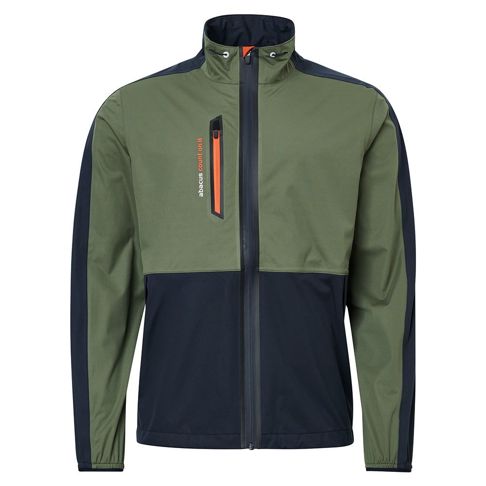 Die Abacus Bounce-Regenjacke besteht aus einem wasserdichten und atmungsaktiven 4-Wege-Stretchmaterial. Alle Nähte sind weiche und flexibel versiegelt. Zwischen das weiche und flexible 3-Lagen Material ist eine Membran eingearbeitet. Die Membran ist wasserdicht und transportiert die Körperwärme nach außen ab, wo sie verdunstet. Aufgrund der weichen Innenseite gibt es bei dieser Jacke kein Futter. Die Jacke hat einen durchgehenden wasserdichten Reißverschluss vorne, eine Brusttasche und zwei Fronttaschen. Das Abacus-Logo im Nacken und entlang der Brusttasche.