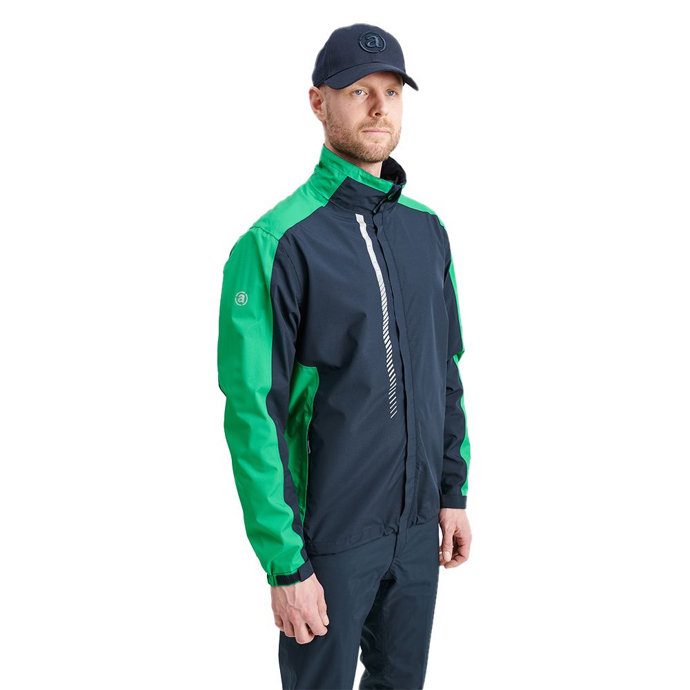 Die Abacus Links Rainjacket besteht aus einem wasserdichten und atmungsaktiven 2-Wege Stretch Material. Der Stretchanteil gibt Ihnen ausreichend Bewegungsfreiheit beim Schwung. Durch den Tunnelzug am Bund und im Nackenbereich lässt sich die Jacke optimal den Wetterbedingungen anpassen.