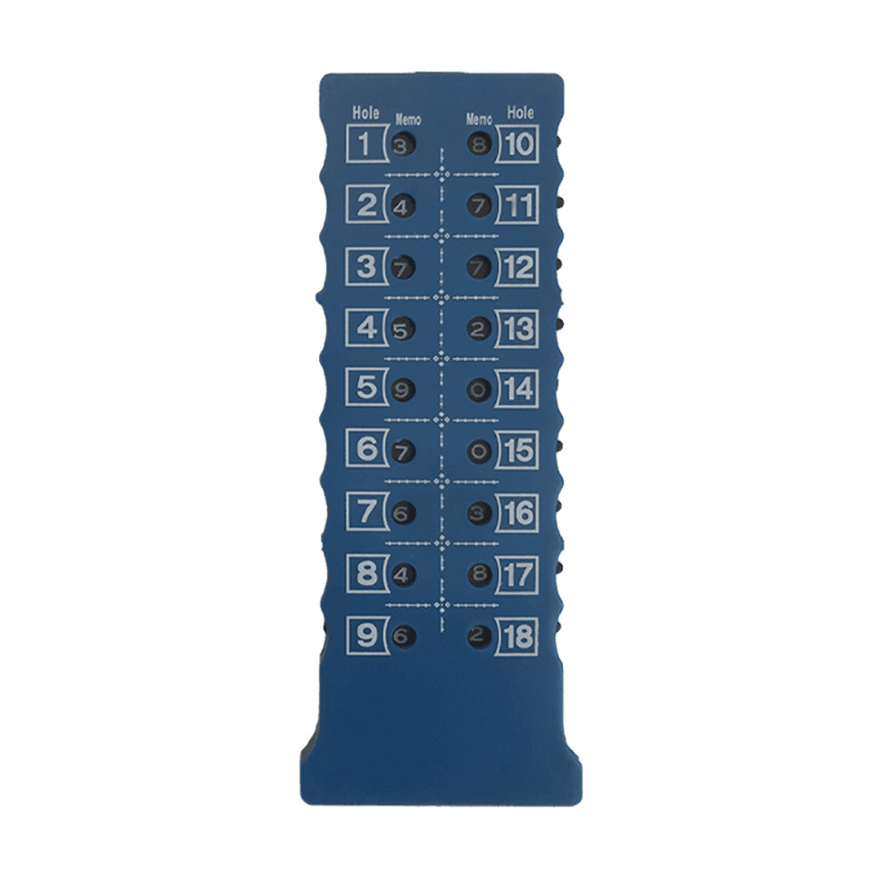Mit diesem Scorezähler haben Sie Ihr Spiel im Blick und müssen sich Ihre Schläge nicht selbst merken. Für jedes Loch können Sie die Anzahl Ihrer Schläge speichern.