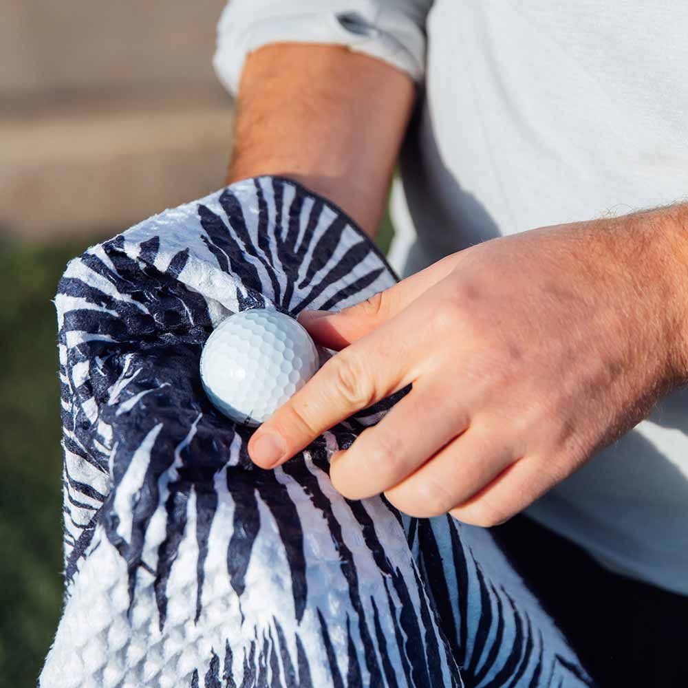 Sagen Sie schmutzigen Golfschlägern Lebewohl! Dieses Golfhandtuch ist aus einem waffelmusterförmigen, saugfähigen Mikrofaserstoff gefertigt, was eine einfache und problemlose Reinigung ermöglicht. An einer Ecke des Handtuchs befindet sich zudem ein Gummi-Reiniger, der den Schmutz aus den Rillen des Schlägerkopfes entfernen kann, und auf einer Seite gibt es Borsten, die den Schmutz abschrubben können. Ein Muss für jeden Golfer, der performen möchte!