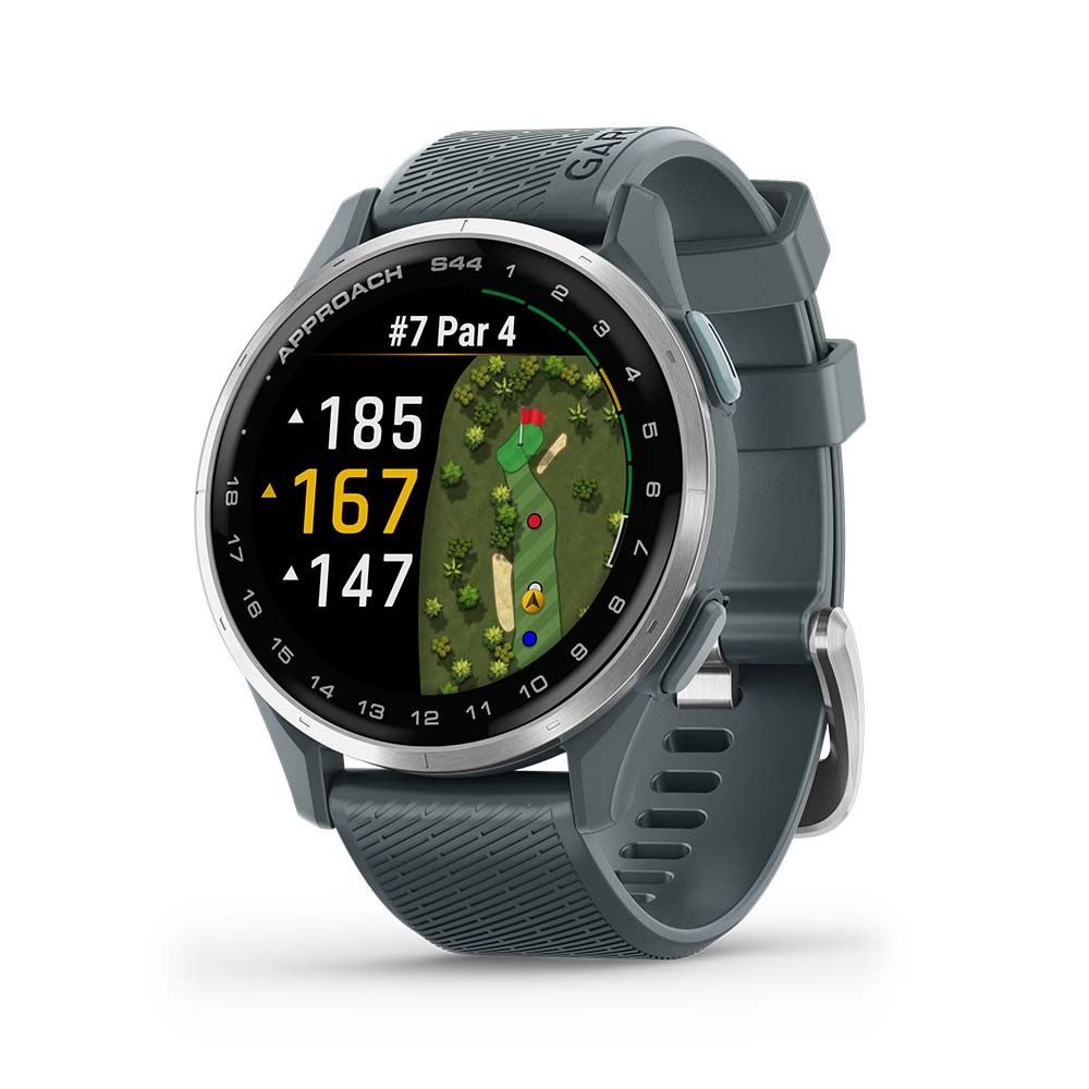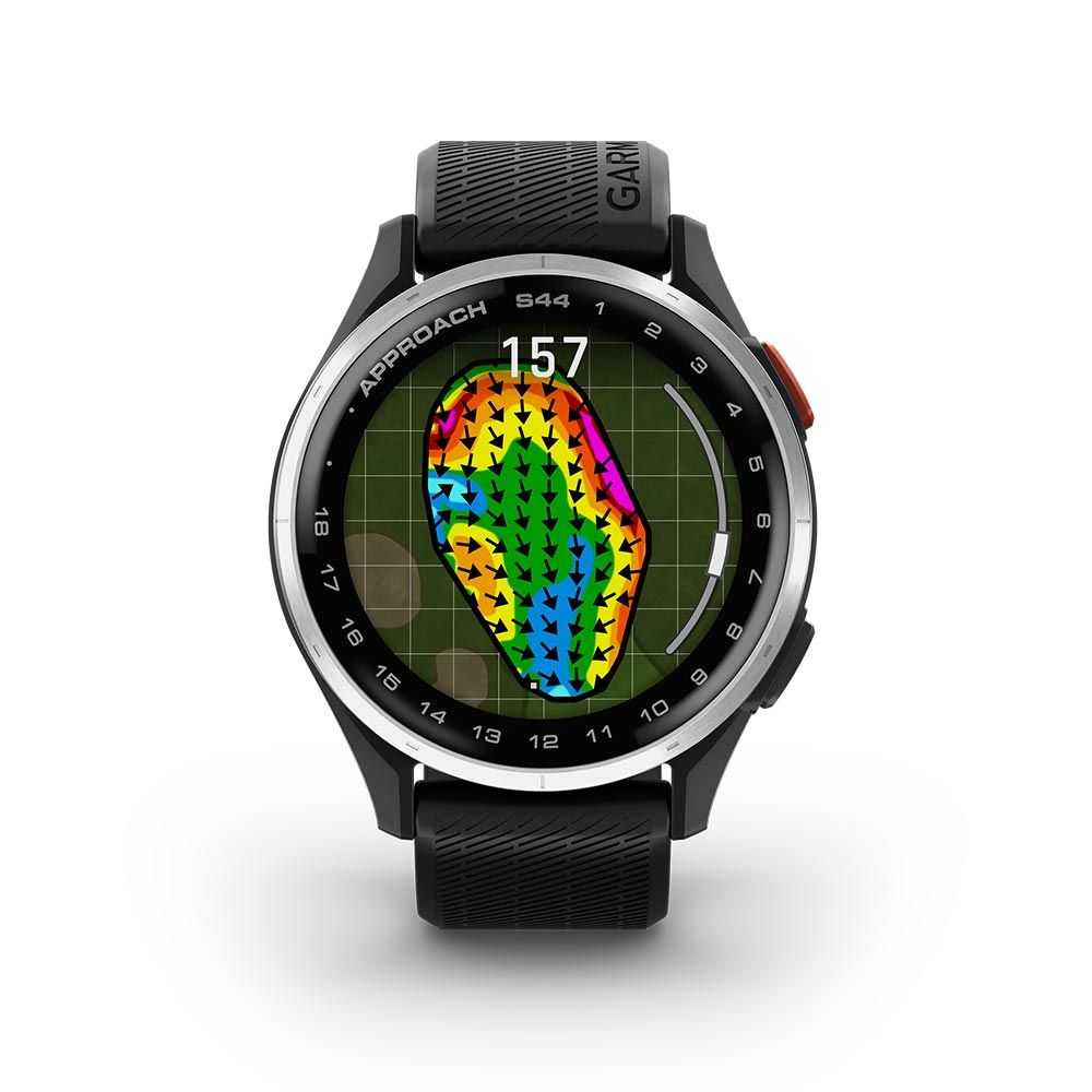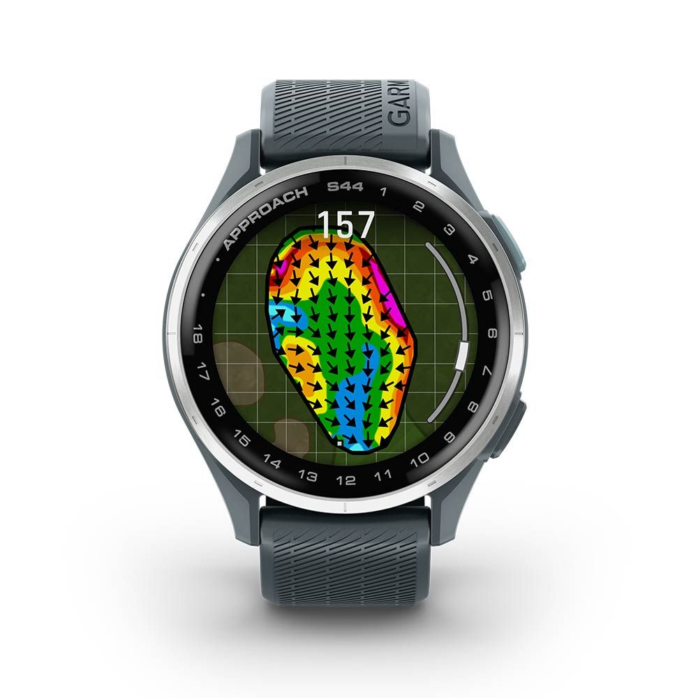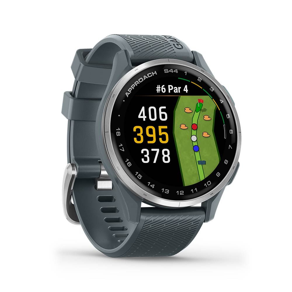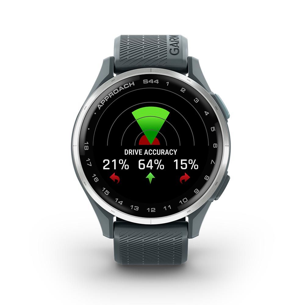 Mit der Approach S44 Golfuhr bekommst du alles, was du brauchst, um dein Spiel auf ein neues Niveau zu heben. Das schlanke und leichte Design wird durch ein kristallklares 1,2-Zoll-AMOLED-Display ergänzt, das es dir leicht macht, wichtige Entfernungen zum Grün, zu Hindernissen und Doglegs auf über 43 000 vorinstallierten Golfplätzen weltweit zu sehen.