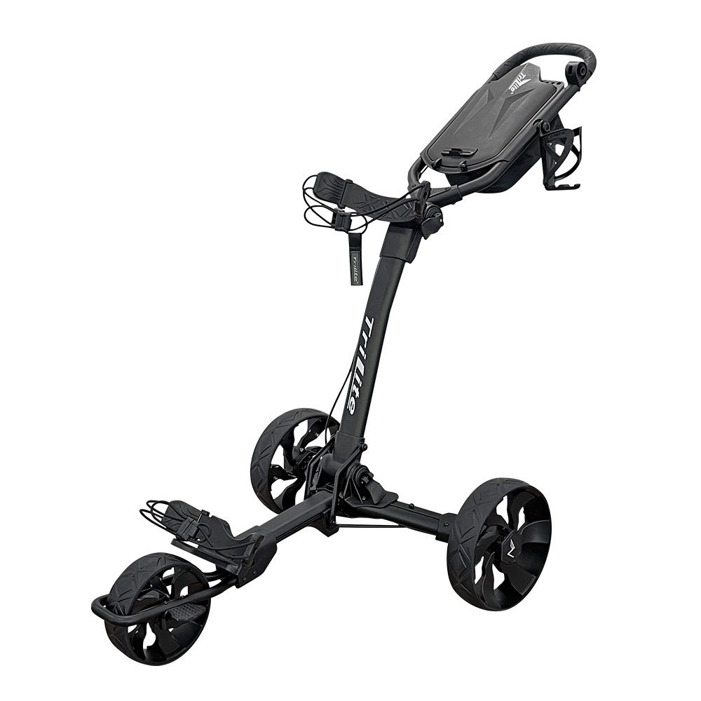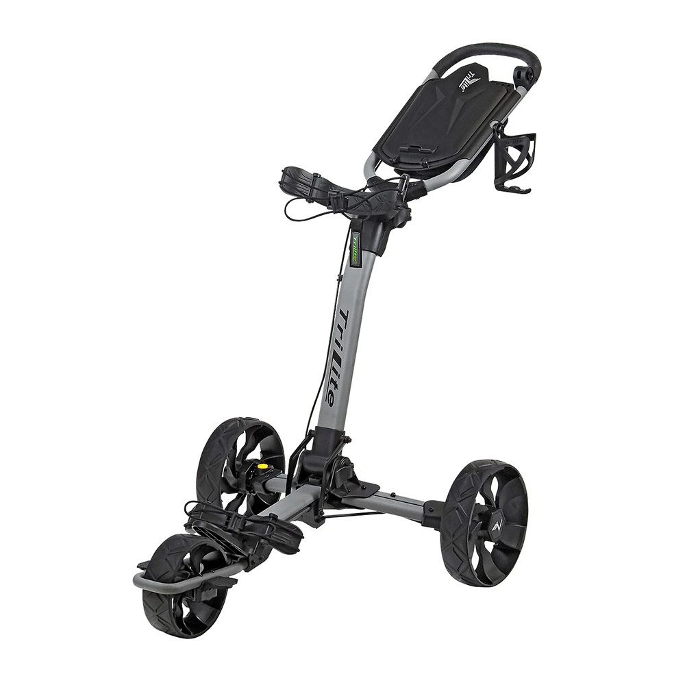 Der Scorekartenhalter wurde mit besseren Magneten ausgestattet und bietet Platz für alles, was man während der Golfrunde griffbereit haben möchte. Eine weitere Verbesserung ist die Positionierung der Kabel für eine bessere Haltbarkeit, und das Vorderrad hat vorne einen Schutzbügel erhalten. Der TriLite wird in derselben Fabrik wie der Erfolgswagen Flip n Go hergestellt, was hohe Qualität garantiert!